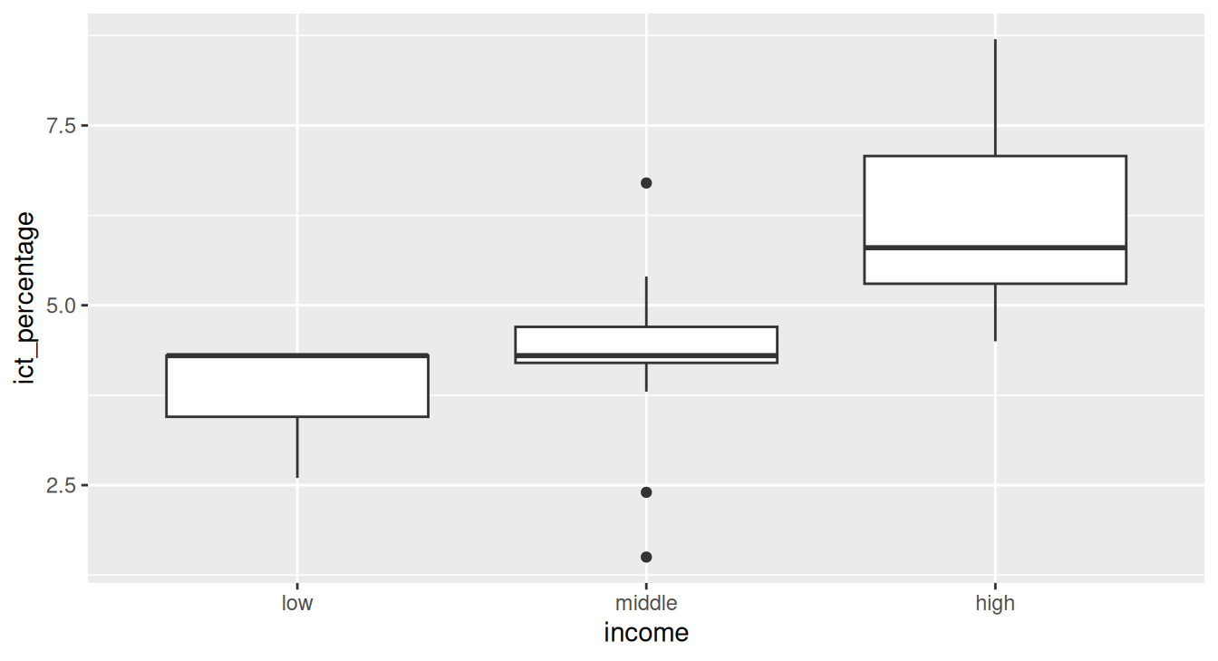 ggplot2uses thegeom_boxplotfunction. - We need to specify the