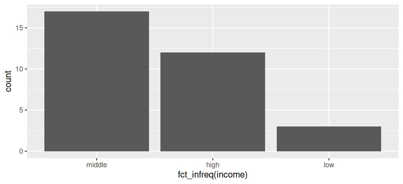 fct_infreqfunction reorders the levels of a factor based on their frequency. - Other options are